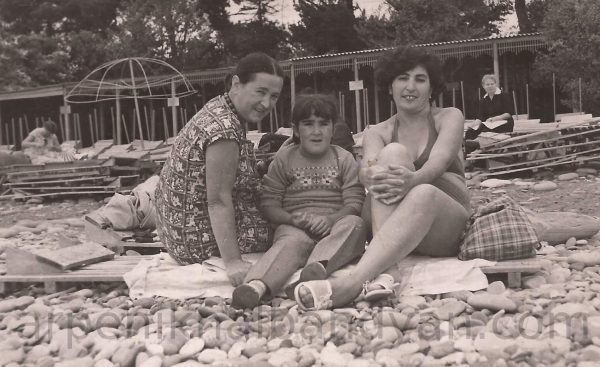 1951. On the beach with Ara Sargsyan, his wife Yevgeniya Mkrtchyan, Mariam Aslamazyan and others