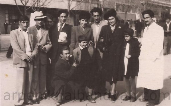 1956, май. Подруга А. Налбандян — Нора, Дмитрий Налбандян, Арпеник Налбандян, —, Амалия Налбандян, —, Эдуард Исабекян