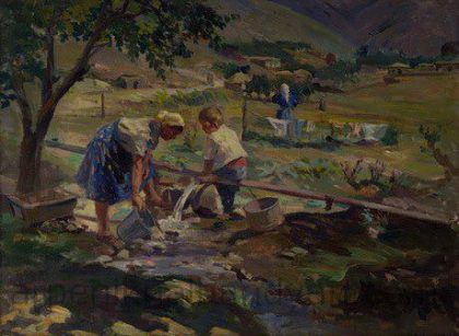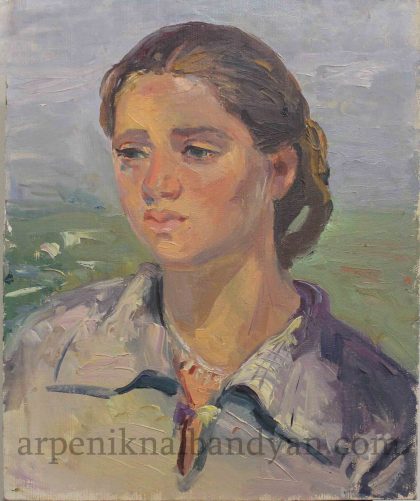 Девочка, этюд к картине «Детская железная дорога». 1957, картон, холст, масло, 50×35, собственность семьи Portfolio Item